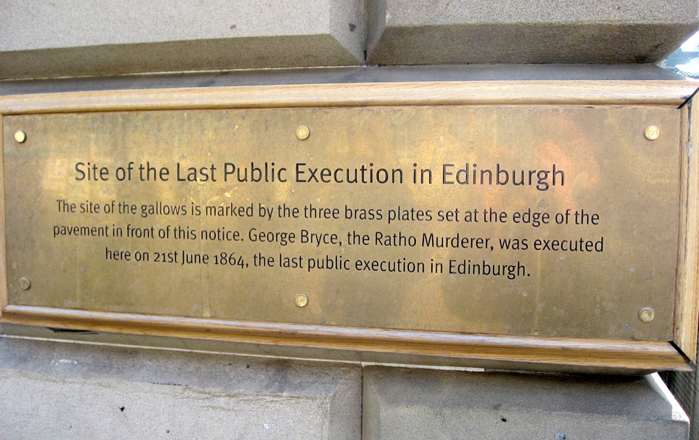 A Plaque marking the site of the last public execution in Edinburgh (George Bryce 1846). Courtesy of http://www.onlyinedinburgh.com