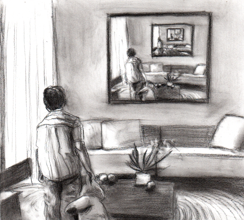 One such use of this style that was flagged was a Mise en abyme. Again, totally new to me. It is essentially an image containing a smaller copy of itself, one example can be seen at the beginning of this blog and another is below (both presented by Peter). Anyone who gets Macaulay Culkin into a literary theory talk is worthy of note in my book. The term is derived from French heraldry and the shields that would contain replicated images of themselves. It roughly translates as “placed into abyss.”