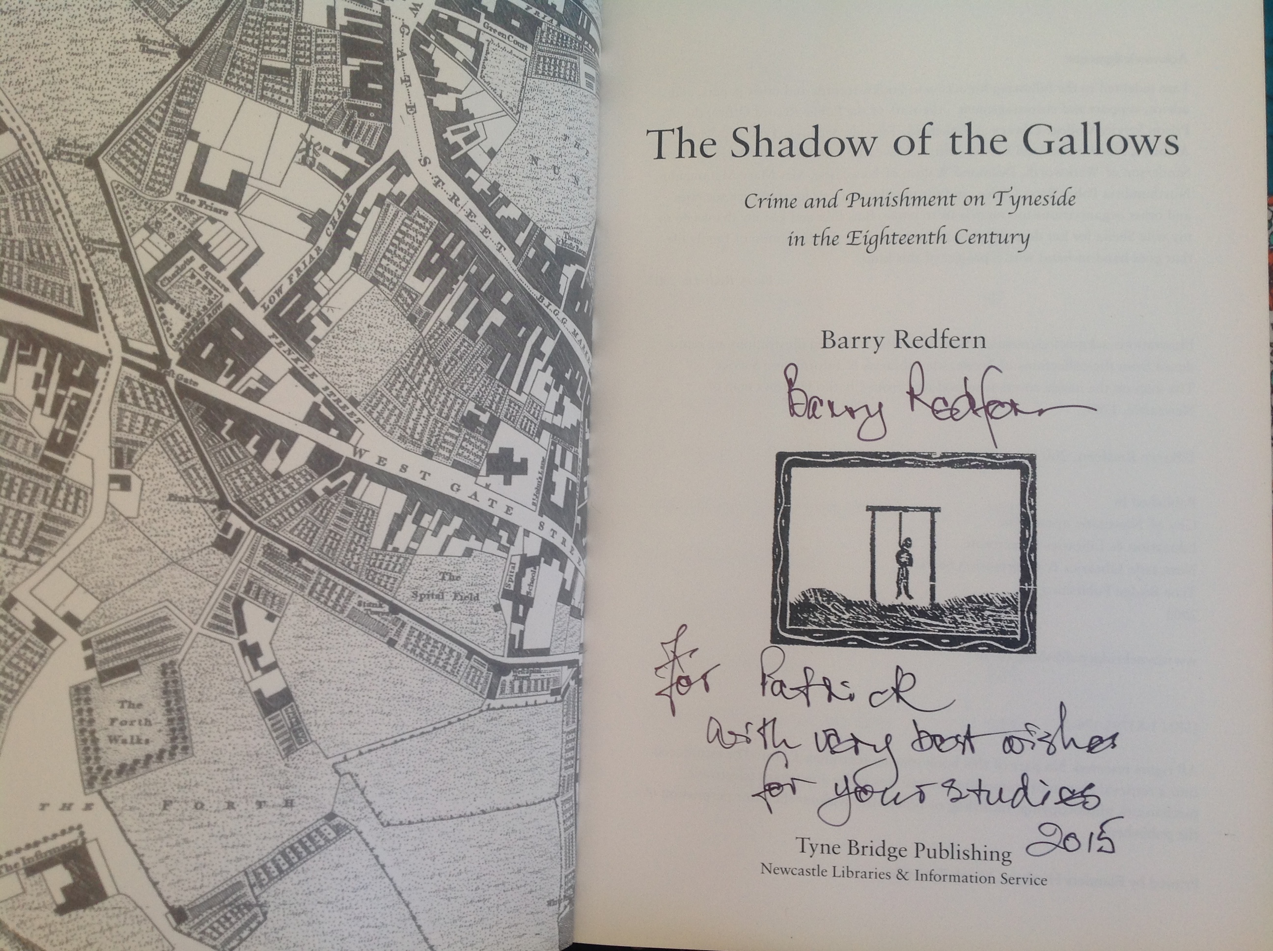 So, I have helped my girlfriend move her floristry business to the Ouseburn (men reading, don’t do a last minute BP/Shell job this Valentine’s, you have an amazing local florist). I’ve been on two training days at the British Library, been preparing abstracts for conferences (fingers crossed for getting accepted), have written and given my first one hour talk (word to the wise, live poll technology is only interesting if it works!) and I’ve even been making a music video with my comedy group Hot Gulp, for the brilliant Wave Pictures. I also got a chance to put a name to a face, when I met with the frequently mentioned Barry Redfern, whose expert knowledge on crime and punishment in the region has been immensely helpful to my studies. It was a thoroughly enjoyable few hours and I even managed to get a signed copy of his book. Right, that’s enough excuses.