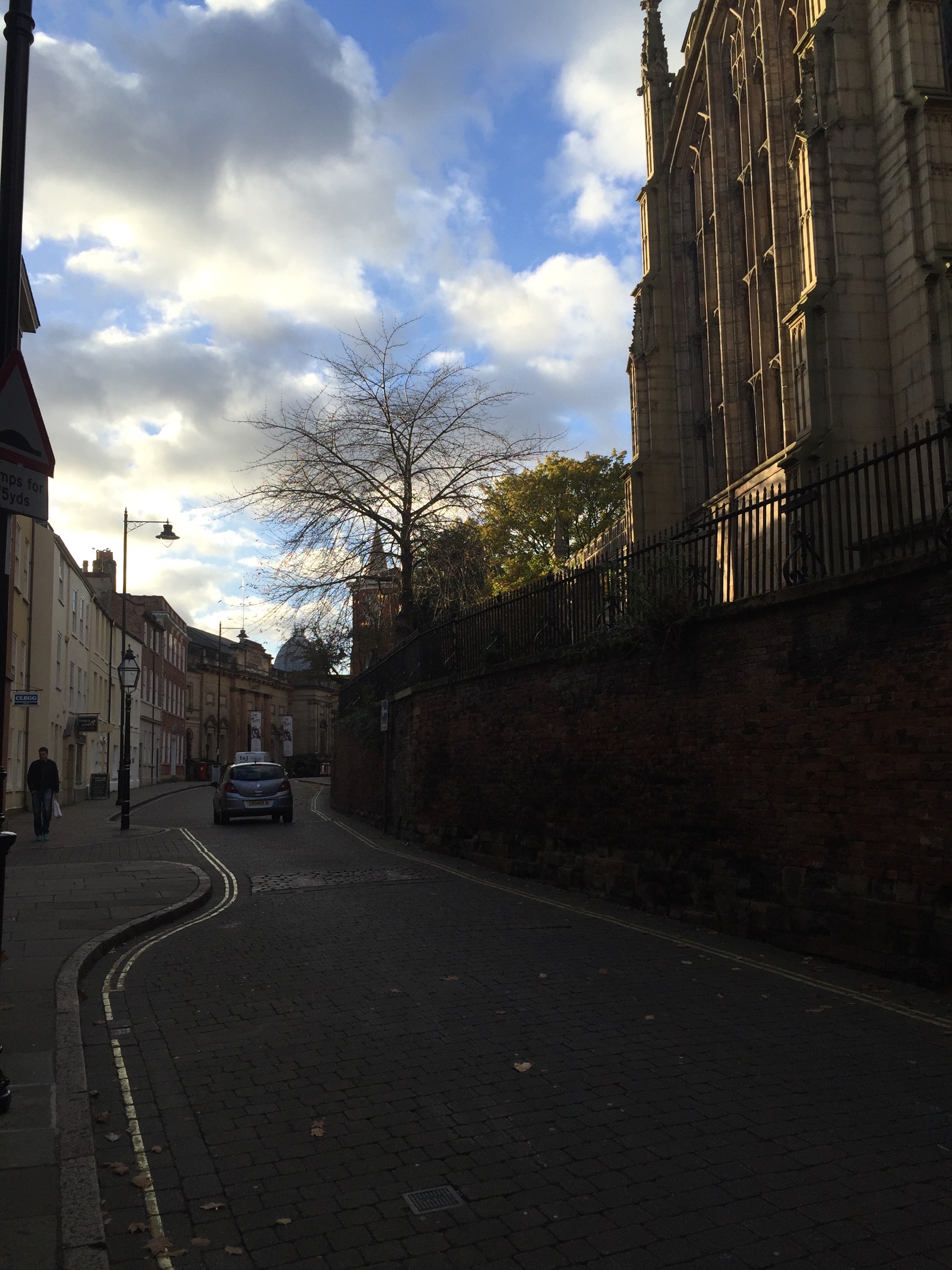 The top of Garners Hill and the sunkissed Nottingham Contemporary Art Gallery.
